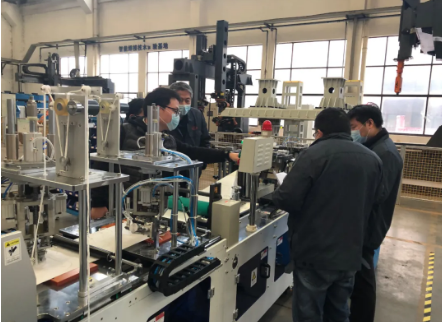 作為生產供貨單位,為了以最快速度擴大產能,八院鵬力科技集團黨支部組織成立“黨員突擊隊”,24小時無間歇輪班工作,帶頭加班加點投入專項任務研制生產。八院鵬力科技集團僅用11天就完成N95口罩機、平面口罩機和壓條機樣機研制,僅15天就實現了量產設備的連續供貨??蒲袌F隊正確處理抓質量、促進度的關系,按照軍工產品質量要求,確保交付產品質量過硬。