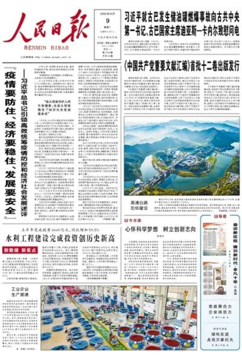 ▲《人民日?qǐng)?bào)》2022年08月09日第01版