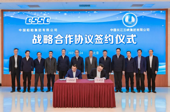 2月24日,中國船舶集團有限公司與中國長江三峽集團有限公司在京簽署戰(zhàn)略合作框架協(xié)議。中國船舶集團黨組書記、董事長雷凡培,三峽集團黨組書記、董事長雷鳴山出席簽約儀式。中國船舶集團黨組成員、副總經理盛紀綱,三峽集團黨組成員、副總經理王良友分別代表雙方在協(xié)議上簽字。