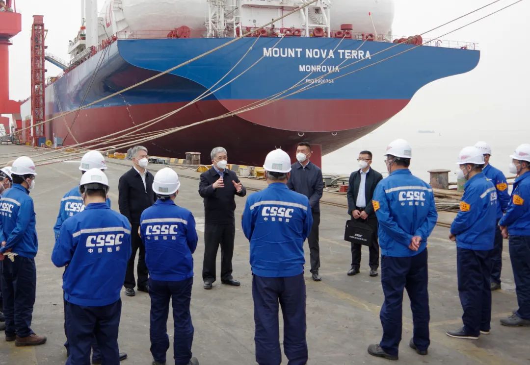 5月15日,中國船舶集團有限公司黨組書記、董事長雷凡培到集團公司旗下上海外高橋造船有限公司調研疫情防控和復工復產工作。中國船舶集團黨組成員、副總經理孫偉參加調研。
