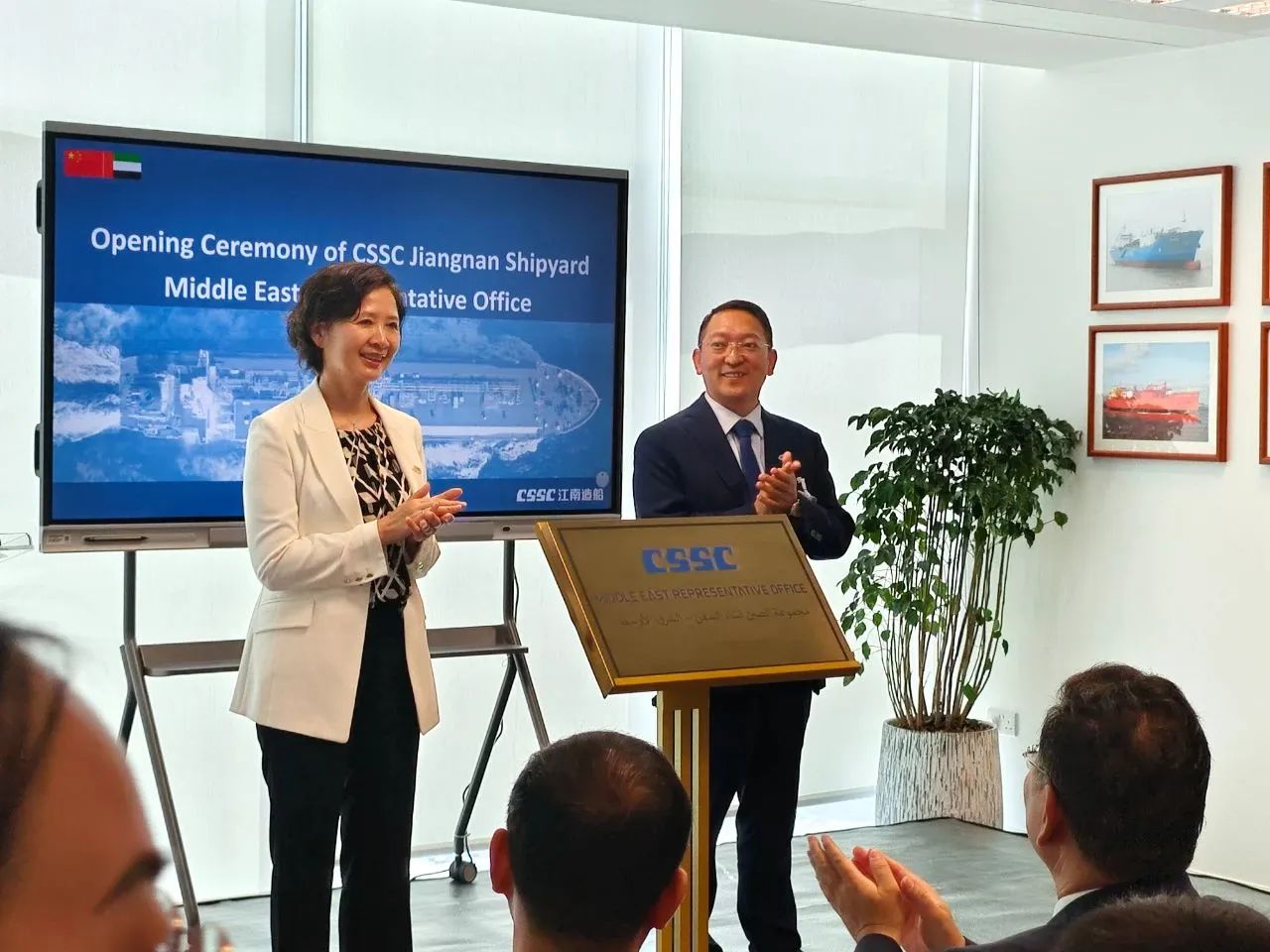 10月10日,中國船舶集團(tuán)江南造船中東代表處揭牌儀式,在阿聯(lián)酋首都阿布扎比舉行。