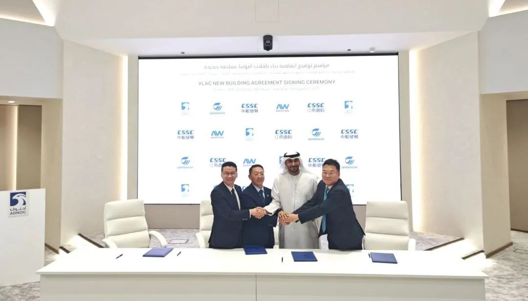 揭牌儀式后,江南造船與阿布扎比國家石油集團(tuán)物流和服務(wù)公司(ADNOC L&S)和萬華化學(xué)集團(tuán)的合資公司AW航運(yùn)公司續(xù)簽了2艘93000立方米超大型液氨運(yùn)輸船(VLAC) 。