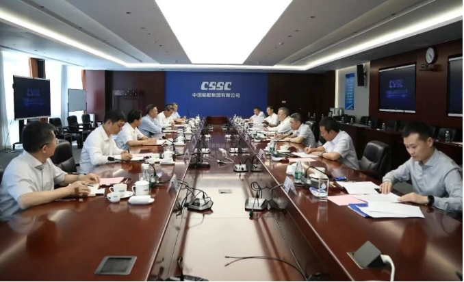 7月23日,中國船舶集團有限公司黨組副書記、董事、總經理王國強在總部與來訪的中國船級社(CCS)總裁趙晏會談,雙方圍繞共同服務國家戰略,進一步深化戰略合作、助推我國船舶工業實現綠色低碳高質量發展進行深入交流并達成共識。