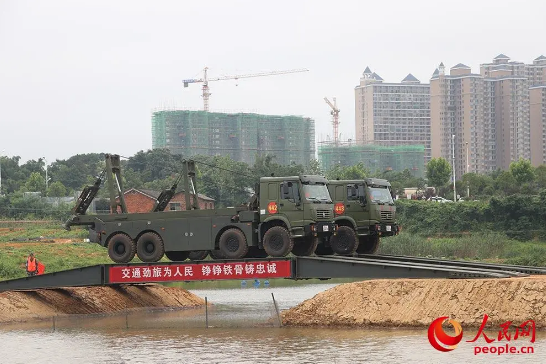 6月20日,2020年湖南省軍地聯合抗洪搶險應急演練在長沙市望城區舉行。中國船舶集團旗下中船應急研制生產的應急機械化橋、硬質路面兩型專業救援裝備參演參訓,為抗洪搶險貢獻船舶力量。