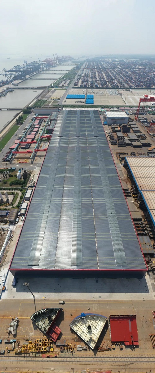該廠房由中國船舶集團旗下中船九院設(shè)計,是國產(chǎn)大型郵輪建造工程的重要配套項目之一,創(chuàng)新采用一體化托架式先進(jìn)結(jié)構(gòu)形式的設(shè)計方案,并在施工中充分發(fā)揮設(shè)計引導(dǎo)、管理同步的優(yōu)勢,為工程整體穩(wěn)步推進(jìn)保駕護(hù)航。
