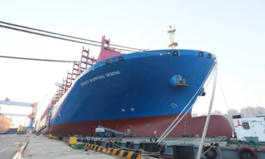 4月10日,大船集團為中遠海運集團建造的20000TEU超大型集裝箱船“中遠海運雙子座”命名交付,刷新了當時中國建造交付最大集裝箱船的紀錄。