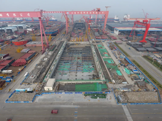 ——第二次改造,2018年10月至2020年6月,再次接長200米,建成后總長達740米。通過中間塢門分別形成前后兩個獨立塢室,以滿足年產1.5艘大型郵輪及3艘VLCC綱領產品要求。