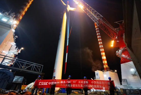 近日,中國船舶集團旗下中國海裝海上風電場捷報頻傳,國內規模最大、國產化程度最高的項目中國海裝華能如東H3項目80臺風電機組完成全場吊裝。