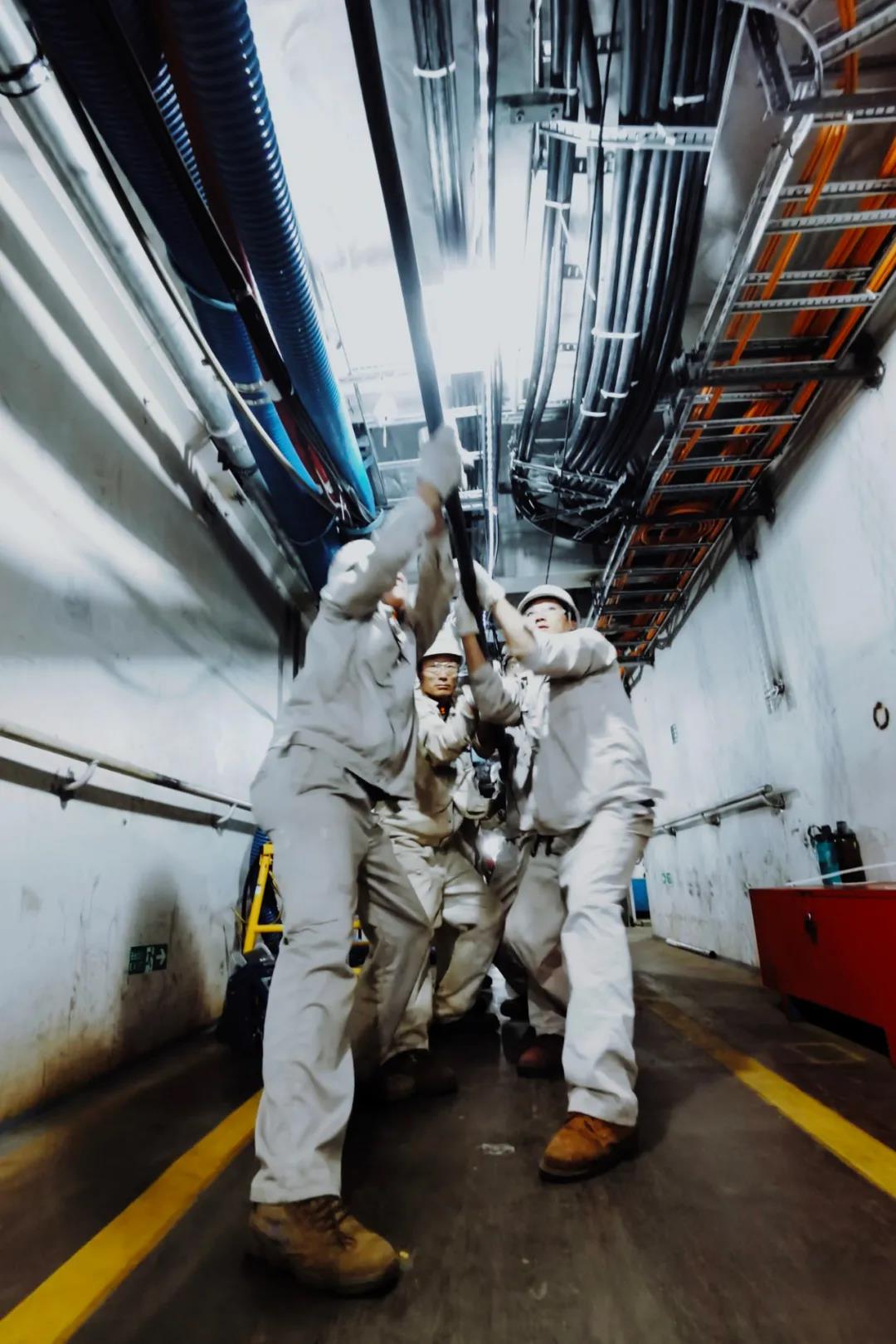 目前已完成全船總段制作和搭載的首制國產(chǎn)大型郵輪H1508很快將迎來全船結(jié)構(gòu)貫通,外高橋造船的工人們正在艙內(nèi)加班加點(diǎn)抓緊敷設(shè)電纜。