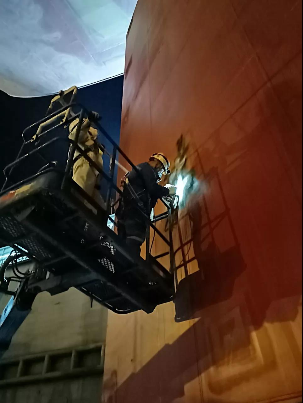 為保證出塢節(jié)點(diǎn),無損檢測人員在國慶節(jié)加班加點(diǎn)對舵葉封板焊縫磁粉檢測。