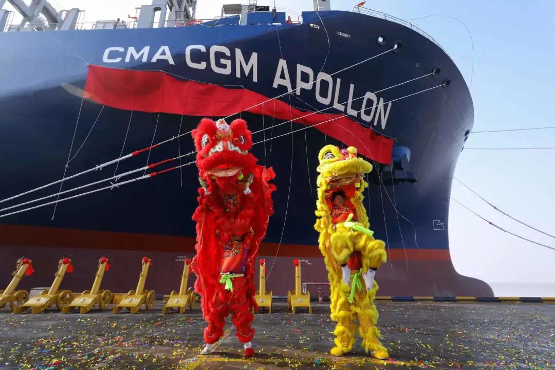 1月4日,新年第一個(gè)工作日。滬東中華聯(lián)合中船貿(mào)易為法國達(dá)飛海運(yùn)集團(tuán)建造的第四艘15000TEU超大型集裝箱船系列船“達(dá)飛·阿波羅”號在上海命名交付。