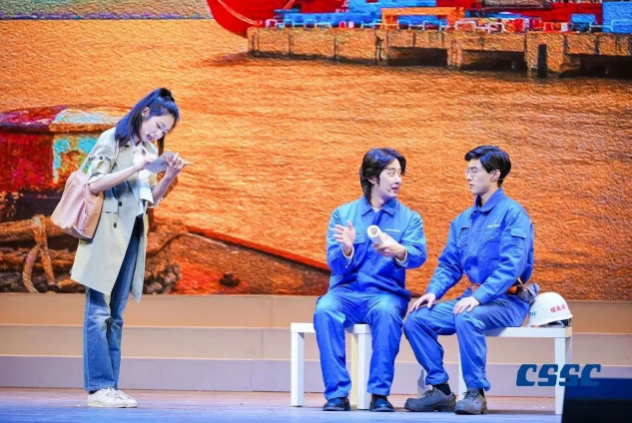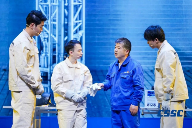現場,來自中國船船集團江南造船(集團)有限責任公司、滬東中華造船(集團)有限公司、上海外高橋造船有限公司、中船動力(集團)有限公司和中國船舶集團公司第七〇二研究所的青年職工將真實工作案例與理論原文結合,將“發展新質生產力”作為工作方向與指引,將他們的造船故事親身演繹。故事從《船舶青年說》起航,共講述了五大篇章,分別為江南造船如何延續百年初心、滬東中華造船LNG船毫厘鑄匠心、七〇二所從“蛟龍”號到“奮斗者”號將深潛進行到底、外高橋造船“愛達?魔都號”大型郵輪“4個120天”的極限挑戰、江南造船“鋼鐵心臟”工程師攻克大型作戰艦建造的不凡創新路,臺詞鏗鏘有力、情感真摯流淌,繪就了一幅精彩的中國船舶夢畫卷。