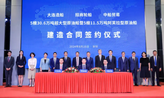 近日,中國船舶集團旗下大連造船聯合中船貿易與招商輪船簽署5艘30.6萬噸原油船、5艘11.5萬噸原油船建造合同。