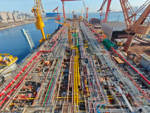 該項目從2024年4月26日鋪底至出塢,共計242天。此次出塢節點的順利完成,不僅為FPSO-10項目的后續水下調試和項目交付打下堅實基礎,也展示了大連造船在海洋工程領域的領先地位和專業能力。