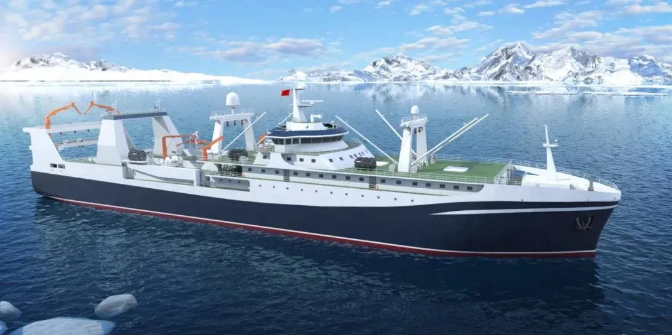 由七〇一所武船院設計的該系列南極磷蝦捕撈加工船排水量近2萬噸,采用先進的連續捕撈系統及現代化生產流水線,是我國目前已啟動最大最先進的南極磷蝦捕撈加工船,建成后將填補我國在南極磷蝦高端漁船設計領域的空白,為我國開發南極磷蝦產品提供裝備保障。
