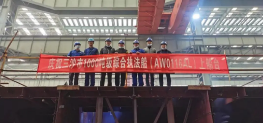 ????這是三沙市1000噸級(jí)綜合執(zhí)法船首制分段上船臺(tái),武船集團(tuán)僅用12個(gè)工作日就保質(zhì)保量完成了首制分段的制造及全部預(yù)舾裝工作。