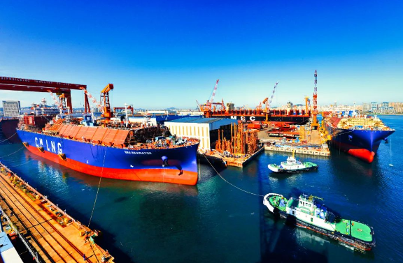 10月28日,中國船舶集團所屬中國重工大連造船為招商輪船建造的17.5萬立方米LNG運輸船2號船圓滿完成出塢節點。